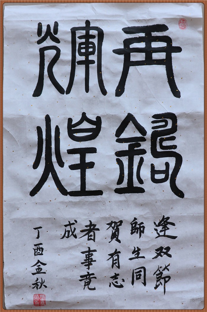 金风送爽,丹桂飘香。为庆祝国庆节、中秋节,我校初中部特在大厅举行“迎双节” 书画作品展。