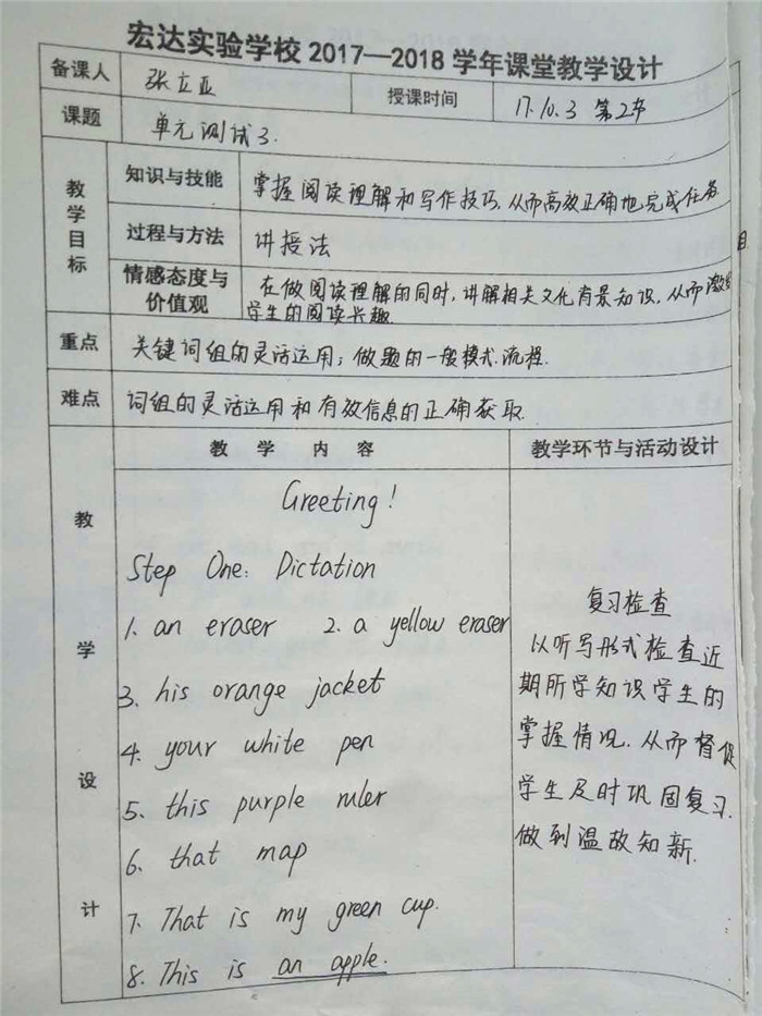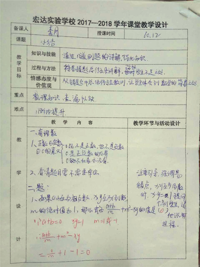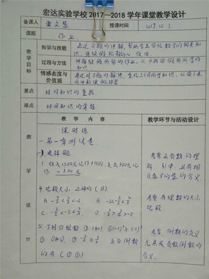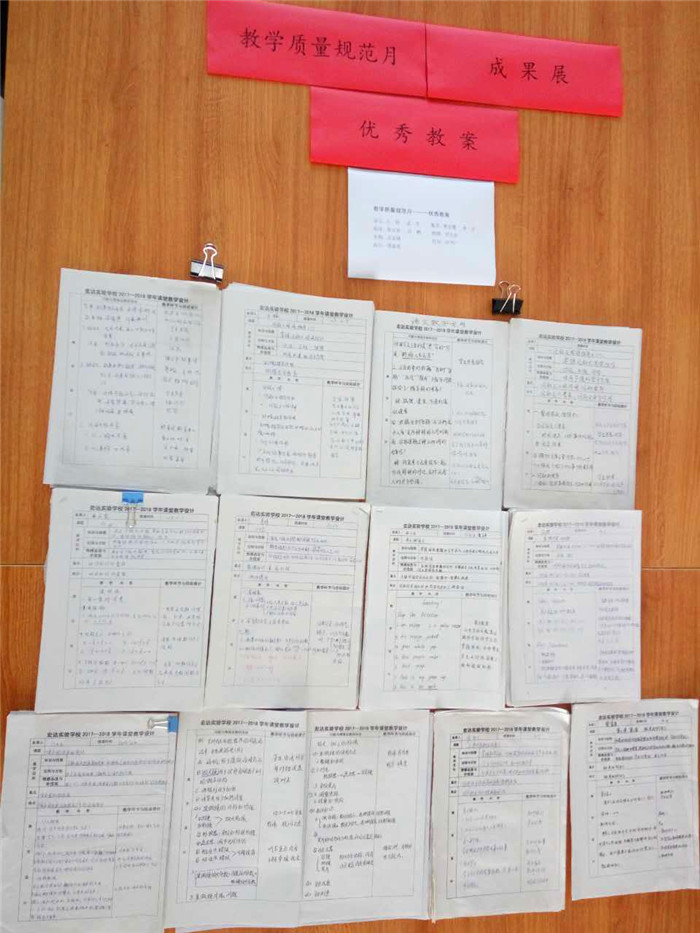 10月份为宏达实验学校的教学质量规范月。为进一步提高教师的教学能力,在此期间学校领导加大对教学的检查力度,教师们自觉遵守学校的各项规章制度,严格落实教学常规,涌现出了一批优秀教学设计。为让广大教师学习先进,自觉赶上,学校将一批优秀教学设计放在说课厅展览,供大家学习。从工整漂亮的书写中,我校教师的过硬的专业素质可见一斑。