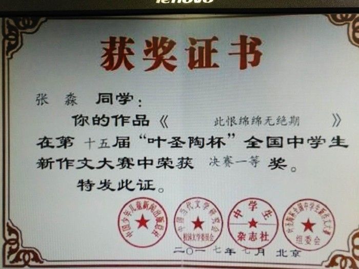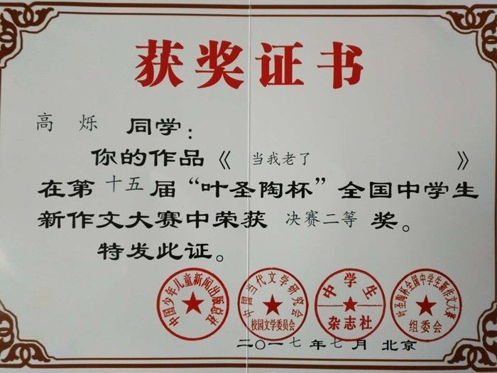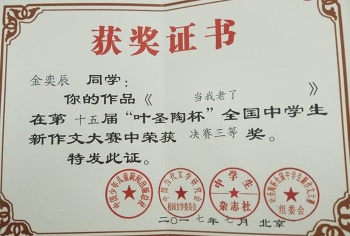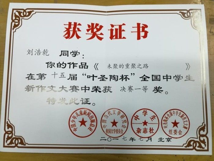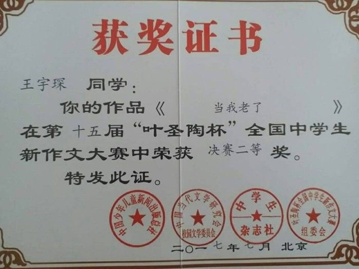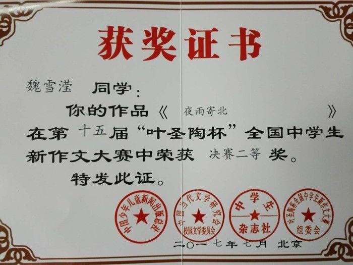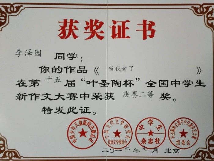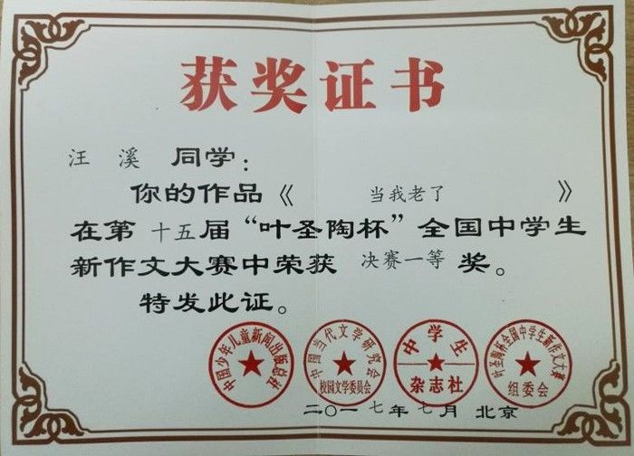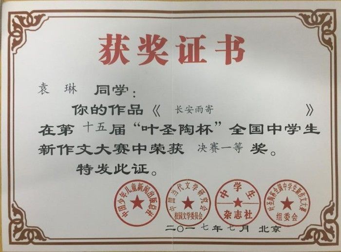 众多同学获得本届作文比赛大奖,充分证明了我校极高的教学水平、成功的培养机制,也再一次印证了学子们良好的人文素养。