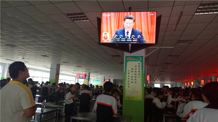 党的十九大召开,关乎祖国未来的发展,是举世瞩目、举国关注的大事。10月18日9点,为提高师生员工的政治素质,培养大家的爱国情感,我校组织干部、教师收看十九大开幕会现场直播,我校下乡扶贫干部职工在所驻村收看,学生在午餐时间也被餐厅里播放的盛会现场直播所吸引,不时抬头观看。我校师生员工在观看十九大开幕会后,心潮澎湃,对十九大以后国家的发展、教育事业的发展、我校的发展满怀憧憬,衷心祝福祖国繁荣昌盛、教育事业蓬勃发展、我校越办越好!