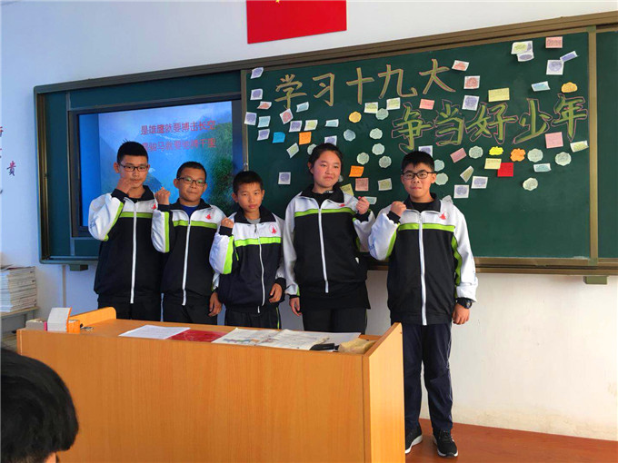 为了让同学们了解十九大内容,领会十九大精神,做新时代的好少年,宏达实验学校积极开展十九大精神进课堂活动。