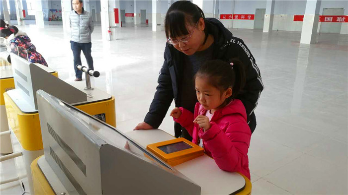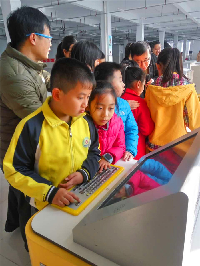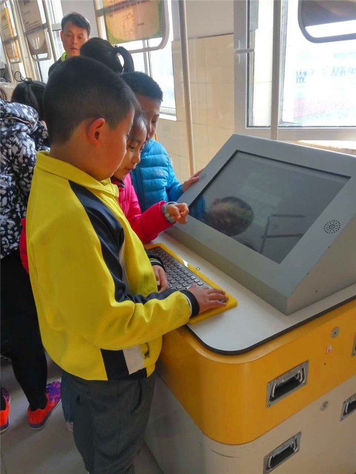 大家高兴的在流动科技馆前合影留念,大人、孩子个个脸上喜气洋洋。孩子们以四年级为限,分成两个小组在家长们的陪同下分别参观。包括周主任在内三位老师亲为孩子们演示讲解各种仪器的妙用,孩子们充满了好奇和兴奋。