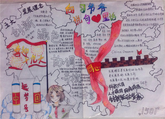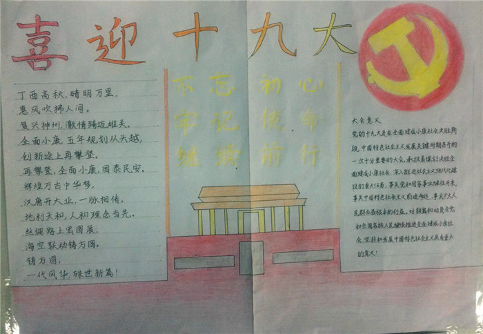 为了贯彻十九大精神,普及十九大内容,我校初中部开展了“学习十九大,我向习爷爷说句心里话”主题活动。同学们通过手抄报形式用真诚朴实的语言表达了中学生对学习、生活和家乡变化的真实感受;表达了为建设美好家乡、美好祖国作好全面准备的决心,对自己成长进步的期盼和希望,对祖国未来发展的祝福。