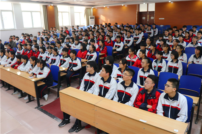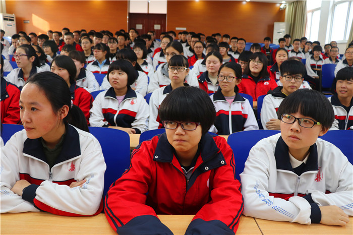 庞院长在沈校长的陪同下先后参观了我校校史馆、教学楼等地,然后宣讲会在科学馆报告厅正式举行,我校高三近200名学生参加了本次宣讲会。