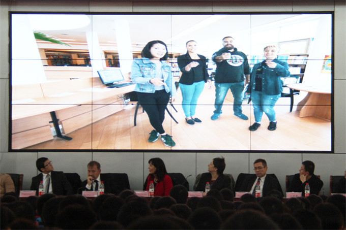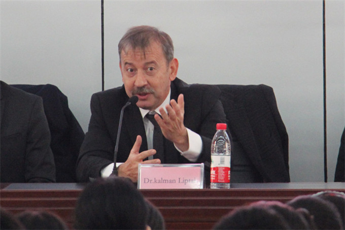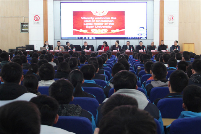 在报告厅,校长Dr.Kalman Liptai先生、国际部主任Katalin Tayler女士为同学们详细介绍了埃斯特尔哈兹大学的办学特色并鼓励在座同学努力学习,将来到埃斯特尔哈兹大学深造。