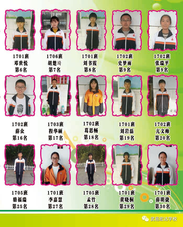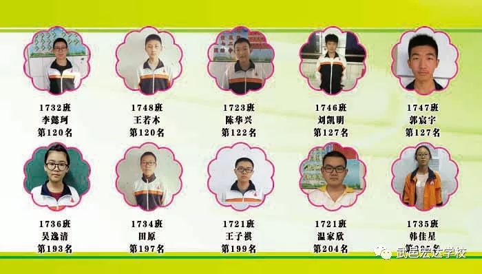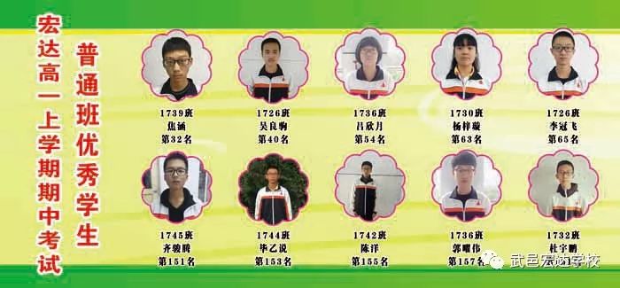 2017-2018学年第一学期高一宏达期中考试光荣榜