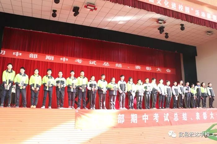会上副主任朱启锦宣读了期中考试各班成绩、优秀班集体名单,副主任孙月梅宣读了优秀教师名单,年级主任李爱群宣读了进步学生名单,并为这些获奖班级、同学、教师颁发了奖状、奖品。