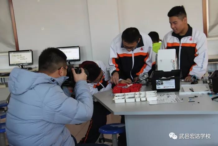 据悉,2017年暑假我校投资三十万元建成了机器人实验室并于本学期投入使用。经过几个月的学习,同学们掌握了机器人的基本知识,利用所提供的机器人可以模拟各种工业机器人工作,如自动垃圾分拣、自动插标机,目前同学们正在积极备战清华大学登峰杯机器人创新竞赛和2018FIRST工程挑战赛(FIRST LEGO League)。