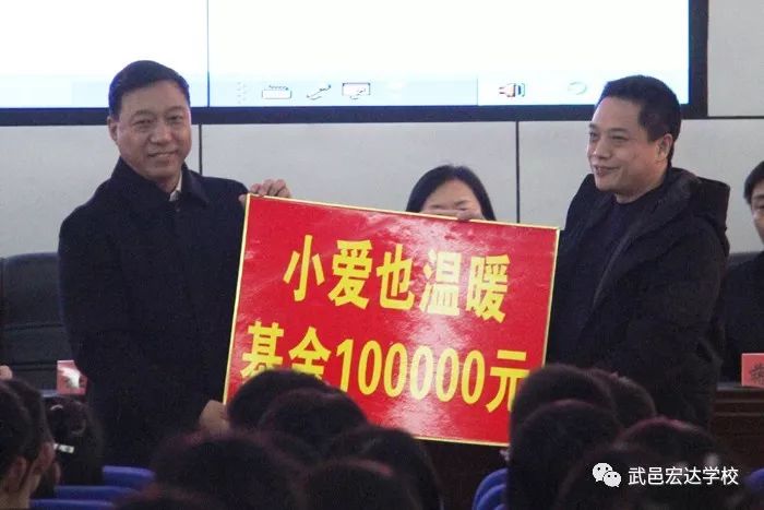 陈宝生主任首先致辞。陈主任在致辞中感谢社会爱心企业家对我县教育事业的大力支持,希望同学们一定要懂得感恩,感恩爱心企业家,感恩父母,感恩学校,用实际行动回报各界对自身的期望。