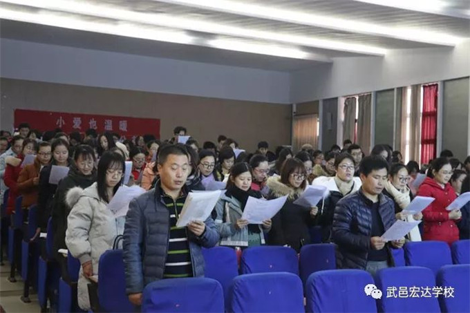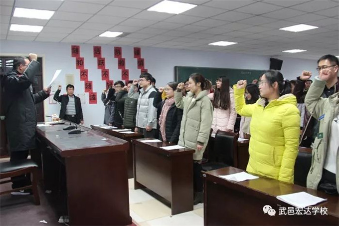 会议伊始,由年级主任带领大家学习了《教师职业道德规范》、《武邑县教育局开展中小学校和在职教师有偿补课专项治理工作实施方案》、《武邑县教师师德承诺书》等相关文件。随后,年级主任带领年级全体教师集体起立宣誓,宣誓内容为《教职工职业道德规范“十不准”》。