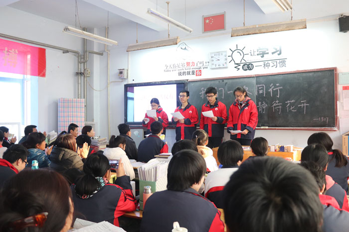 会议伊始,首先由高三年级主任向家长代表,详细介绍了高三年级师生的日常工作及学习、生活。随后,在学生的引领下家长们走进各班教室,参加班级家校联谊会。班级联谊会内容丰富多彩,节目多样,家长们深入体验孩子们在学校的生活。会后家长们表示,家校联谊会这种形式很好,利于家长与学校的交流沟通,希望以后这样的活动能够多多举办。