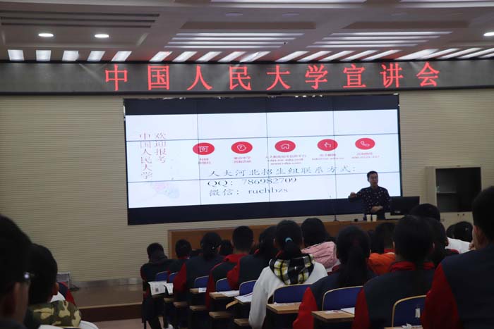 12月14日下午,中国人民大学河北省招生组负责人张老师和招生办杨老师莅临我校,举行了招生宣讲会。