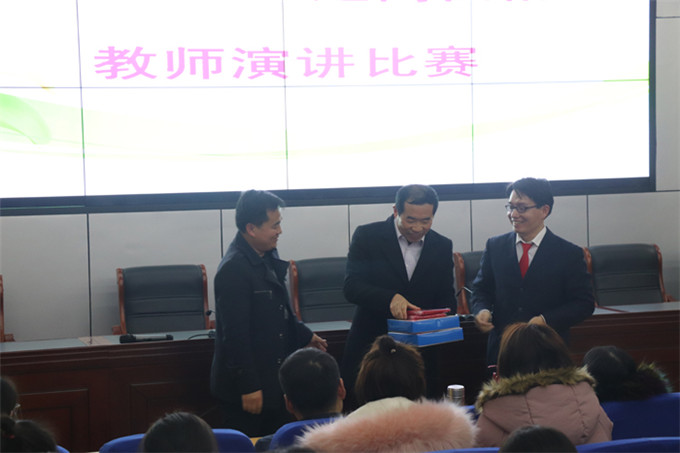 为保证比赛的公平公正,我校从各个年级遴选优秀语文老师担任评委。经过一个多小时紧张激烈的比赛和评委们认真评比、打分,比赛成绩揭晓,李群老师、袁占军老师斩获一等奖。我校副校长周丙顺和各年级主任为获奖选手颁奖并合影留念。每年一度的教师演讲比赛,已经成为了我校的品牌活动之一,对营造良好的校园文化氛围起到了积极作用,也为学校发掘和培养了一批演讲人才。
