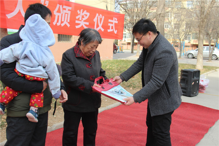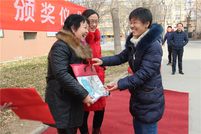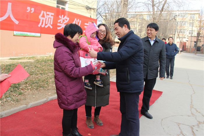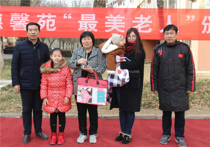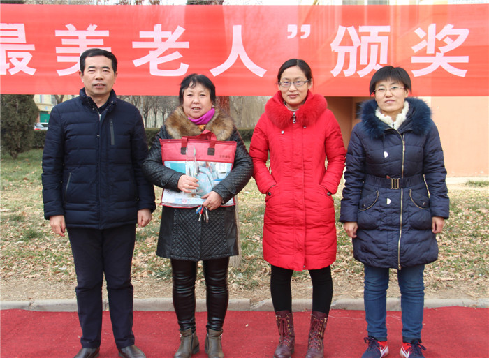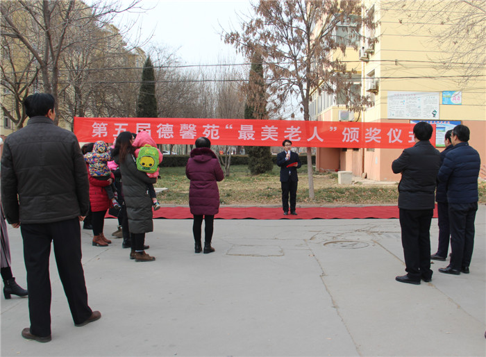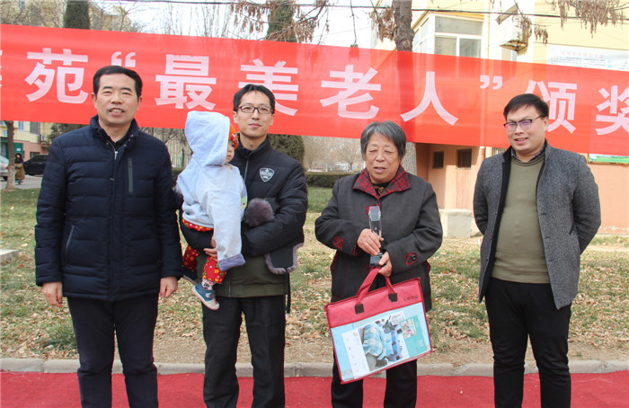 1月6日中午,阳光灿烂,天空湛蓝,德馨苑小区广场内,老人孩子,喜笑颜开。为了弘扬我国尊老敬老的优良传统,体现我校的人文关怀。我校教务处组织举行了第五届“最美老人”颁奖典礼,表彰在我校教职工背后默默付出的老人。我校副校长周丙顺、教务处主任高志勇、副主任韩连仲及各年级主任、获奖老人和子女参加了颁奖典礼。