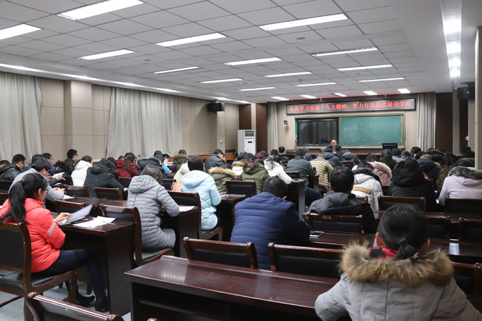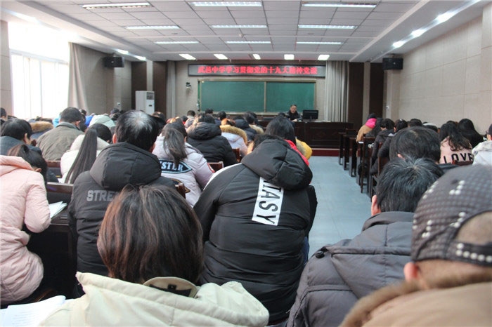 大家从四个方面解读了十九大精神,并说到:学习党的十九大,要聚焦到我们学校教学工作上,要聚焦到当前开展的师德师风建设上,要聚焦到当前全县扶贫攻坚大局上,要和具体工作相结合,不脱离实际,全体党员教师要以共产党员的标准严格要求自己,以奋发有为的精神状态,以时不待我的干劲,确保十九大精神在我校落地生根。