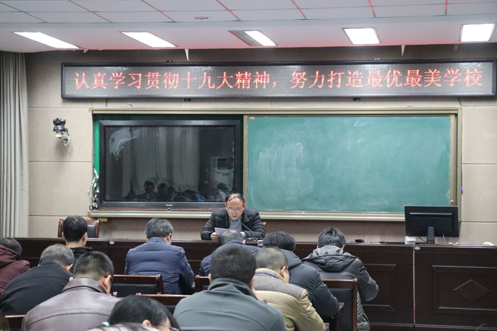 鲁校长从“准确理解新时代中国特色社会主义思想”和“全面贯彻新时代中国特色社会主义思想”两个方面为大家做了讲解。鲁校长还强调:“我们作为党员教师必须花更多的时间,下更大的功夫,用更有效的方式,认真领会十九大文献中的新思想、新理念、新论断,信心百倍、意气风发的融入新时代”。