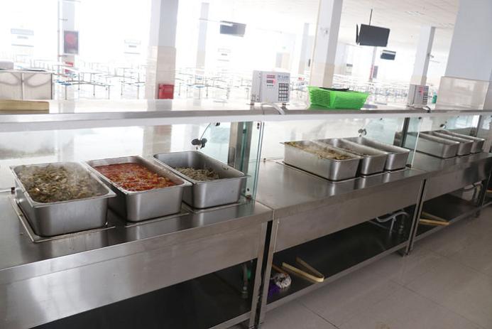 食堂还特地加装了保温槽,无论是先到的同学,还是后来的同学,都能吃到热乎乎的食物。