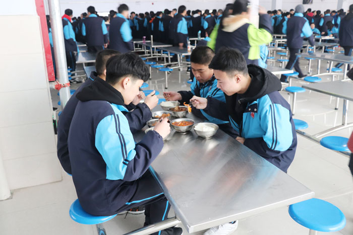 餐厅后厨齐全的设备、干净的环境、新鲜的食材,为保证师生们饮食准时、安全、卫生提供了强有力的后盾。