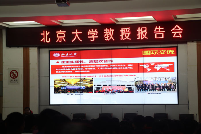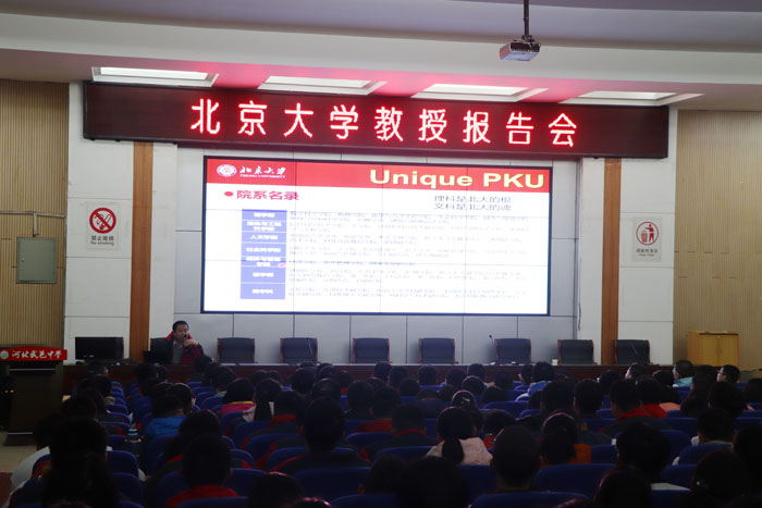 1月24日下午,北京大学政府管理学院党委书记、北京大学河北招生组组长李海燕教授;北京大学工学院党委书记、北京大学河北招生组衡水地区负责人孙智利教授;北京大学河北招生组衡水地区招生老师赵悦为我校高二、高三年级尖子生作招生宣讲。我校副校长周丙顺、教务处主任高志勇、高二年级主任张延华、高三年级主任马利辉及部分教师一同聆听了此次宣讲。