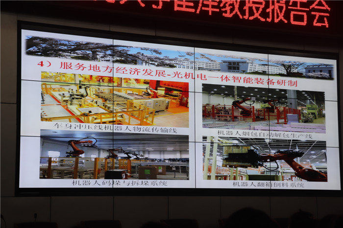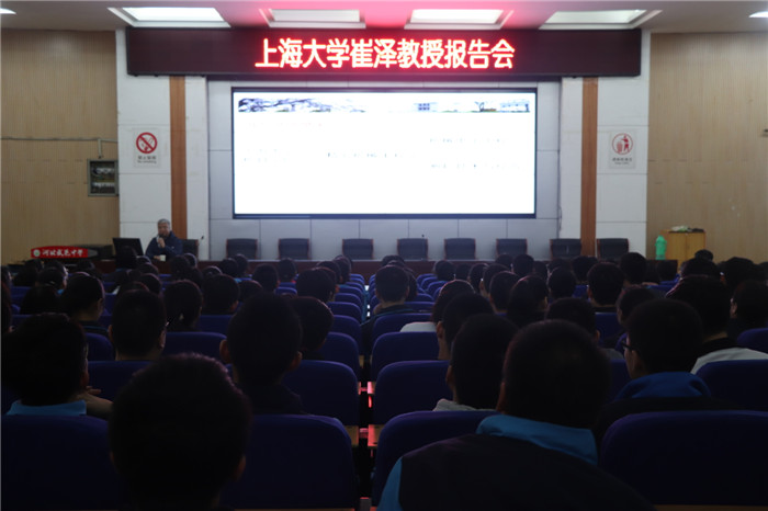 崔泽教授在报告厅为我校高三学子做了报告,报告中讲到上海大学的尖端专业诸如机电自动化、传感器、机器人等高科技内容,并将部分成果展示给同学们,引起了同学们极大的兴趣。刘立起老师对上海大学的招生政策,及学校的基本学习生活事项做了详细讲解。最后的交流环节,三位老师还耐心的回答了同学们关切的一些问题。
