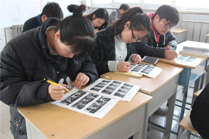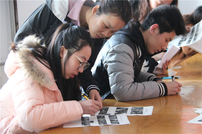 此次活动在一楼会议室举行,老师们按座位坐好,年级部干事把提前准备好的学生照片发给老师们,让老师们在下面写上学生名字,看谁写的多、写的对。