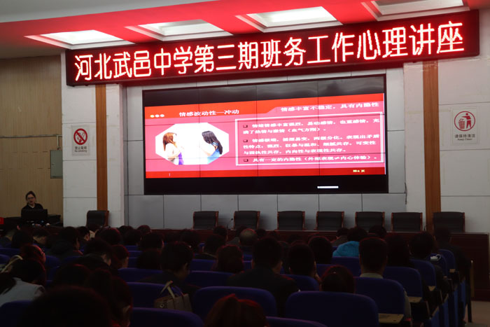 此次讲座由李妹娟老师主讲。李老师从心理专业的角度,深刻剖析了当下中学生的心理特点,就班主任如何变成学生的朋友及班主任影响力的提升策略等方面做了详细讲解。听完讲座后,班主任老师们纷纷表示,聆听此次讲座,获益很多,对自己今后的班主任工作有很好的指导作用,希望学校多多开展类似的活动。