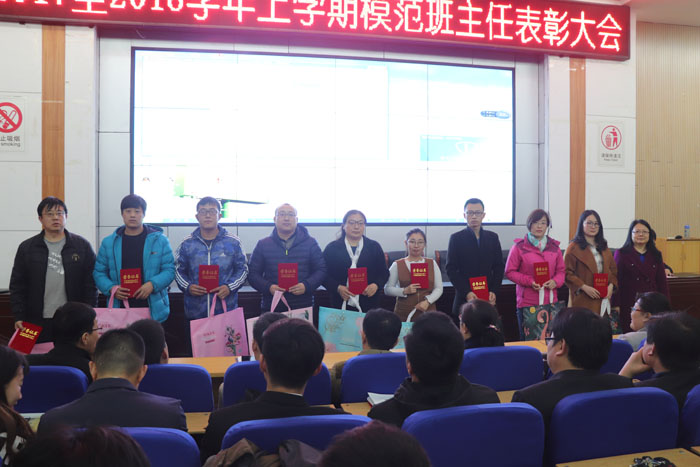 在过去的2017至2018学年第一学期,我校共有46位班主任老师,被评为“模范班主任”。张主任宣读模范班主任名单,各年级主任宣读本年级“模范班主任”颁奖词,刘校长为获奖班主任颁发证书及奖品。颁奖仪式结束后,徐亚男老师作为模范班主任代表进行发言,与大家分享在自己在班务常规管理中的经验做法。
