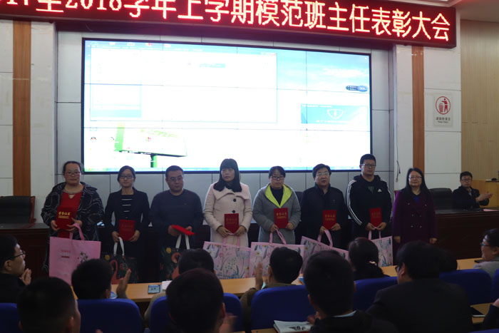 4月3日下午,我校组织举行2017至2018学年上学期模范班主任表彰大会,我校副校长刘玉香、各年级主任、全体班主任及预备班主任参加了此次大会。大会由政教处主任张双柱主持。