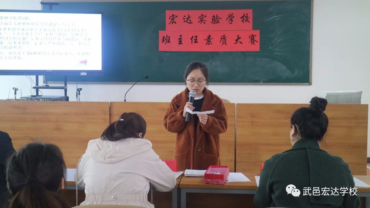 为了进一步增强实习老师的素质,为新学年开学培养合格的班主任,宏达实验学校于4月4日下午在多功能教室举办了实习班主任素质大赛。为保证比赛的公平公正,主管副校长赵晓艳、年级副主任周喜峰、杜晶及几位资深优秀班主任作为评委,为选手打分。比赛由周主任主持。