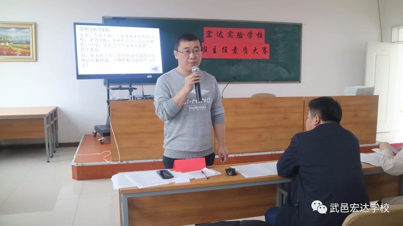 为了进一步增强实习老师的素质,为新学年开学培养合格的班主任,宏达实验学校于4月4日下午在多功能教室举办了实习班主任素质大赛。为保证比赛的公平公正,主管副校长赵晓艳、年级副主任周喜峰、杜晶及几位资深优秀班主任作为评委,为选手打分。比赛由周主任主持。