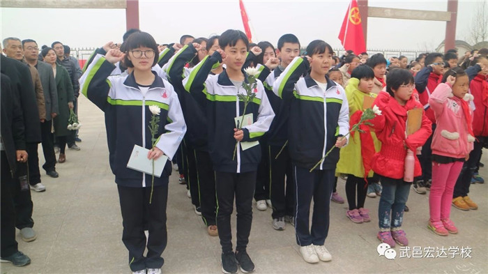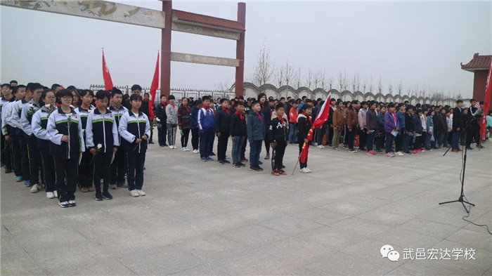 清明节前夕,我校初一初二学生代表在年级副主任朱启锦、杜晶的带领下,来到位于我县圈头乡的五二一烈士陵园,与全县各界代表五百余人一同扫墓,缅怀先烈。
