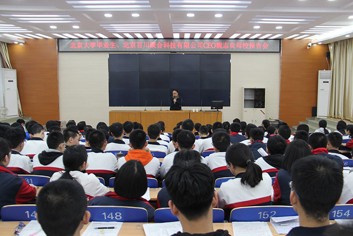 4月6日晚,北京大学毕业生、北京百川聚合科技有限公司CEO魏志良回母校作报告,副校长周丙顺、部分老师及高三文理实验班学生一起聆听了我校优秀校友逐梦北大的历程及创业的故事。