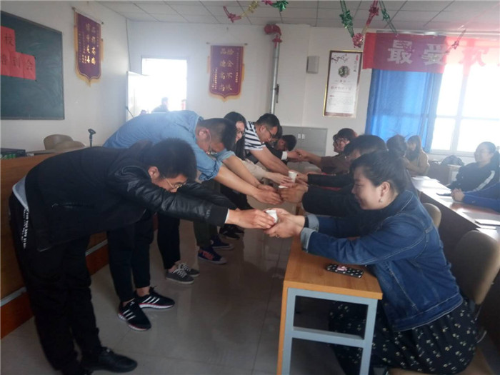 4月15日下午,宏达实验学校在多功能教室举行第二批实习教师岗前培训会,年级副主任周喜峰、杜晶,老教师代表何全体新教师参加了会议。经过一段时间的培训,新教师们已经初步掌握了相关的理论知识,下一步将正式进入实习岗位。周主任和杜主任对新老师们培训期间的表现,做了充分的肯定,并再次叮嘱大家实习期间要注意的事项,力争做到万无一失。培训会上,新教师还与老教师结对子,确立师徒关系,向师父敬茶,并鞠躬致意,表达了年轻人学习的诚心。