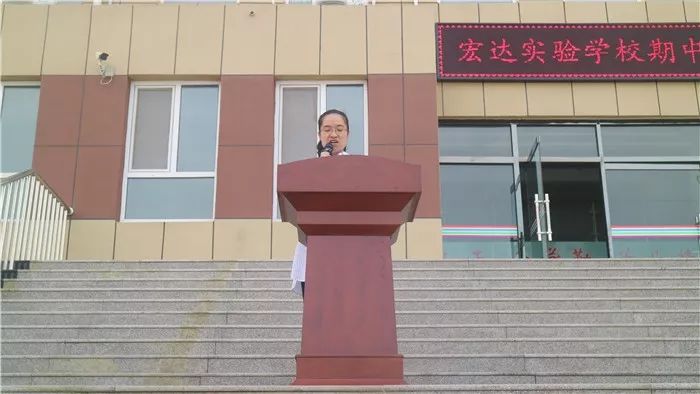 4月29日早晨,天朗气清,春风送爽,宏达实验学校在广场举行期中考试总结暨表彰大会,主管副校长赵晓艳、年级副主任周喜峰、杜晶及全体师生1800多人参加了大会,会议由杜主任主持。
