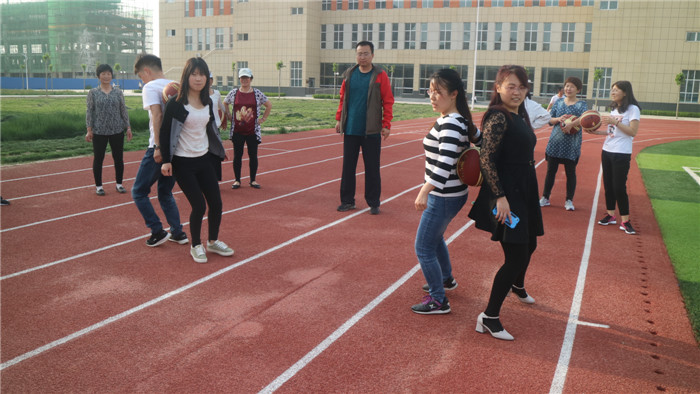 为丰富教职工的文化生活,5月9日下午,宏达实验学校在操场举行了教职工春季趣味运动会,近百名教职工参加了本次运动会。本次趣味运动会分为双人运球、筷子夹乒乓球、袋鼠跳跳跳、踢毽子、拔河等五个项目组成,经过一个多小时的激烈角逐,各项奖项也随之产生了,主管副校长赵晓艳、年级副主任周喜峰、杜晶为大家颁发了奖品。