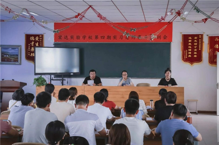 6月17日下午,宏达实验学校在多功能教室举行了第四期实习老师培训会。主管副校长赵晓艳、年级副主任周喜峰、杜晶及各学科组长、全体实习老师参加了会议,会议由杜晶主任主持。三位领导对培训的安排、内容、意义进行详实的讲解。为期一个月的培训,旨在全面提高实习老师的专业水平、个人素养以及对学生的管理能力,希望大家能够珍惜这次机会,积极锻炼自己,为下学期上岗奠下良好的基础。实习老师纷纷表示,一定认真对待实习,努力向老教师看齐,不辜负领导的期望。