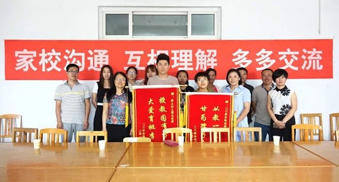 6月21日,家长代表向我校1731班班主任王朝志老师及任课教师送来锦旗,表达对1731班全体老师的感激之情。我校副校长刘玉香、年级主任邱雪及1731班的教师在会议室热情接待了家长代表。