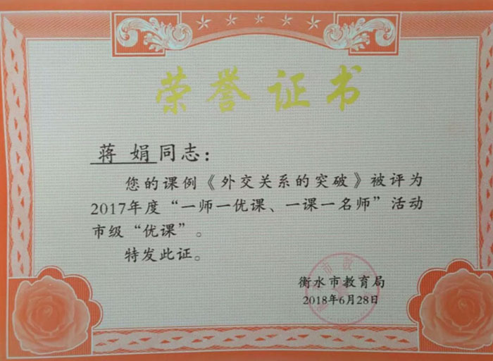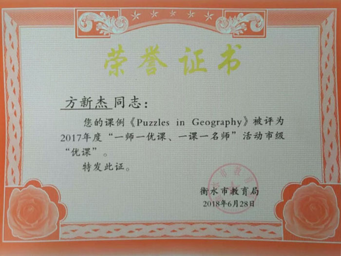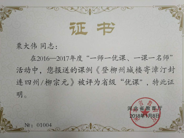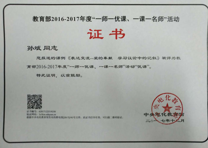 近日, 2016—2017年度“一师一优课,一课一名师”活动比赛结果揭晓。我校孙斌老师的课例被评为部级“优课”;栗大伟、孙龙朝、李大东、李然然四位老师的课例被评为省级“优课”;方新杰、蒋娟、卢文秀、魏凤霞四位老师的课例被评为市级“优课”。