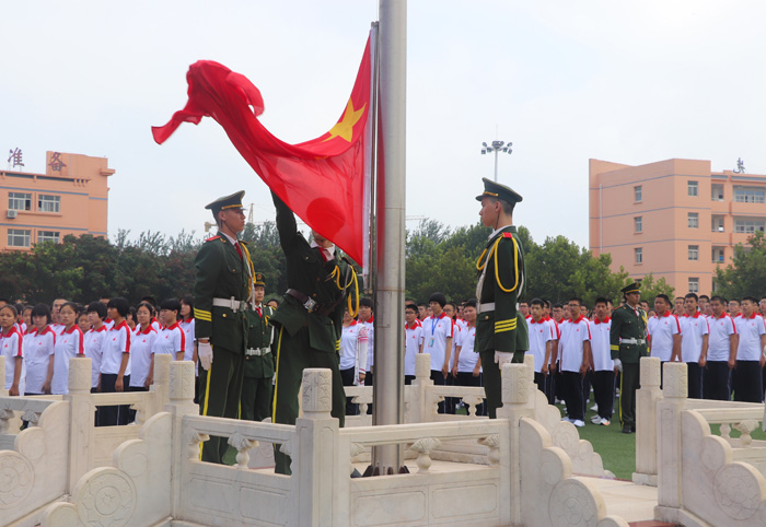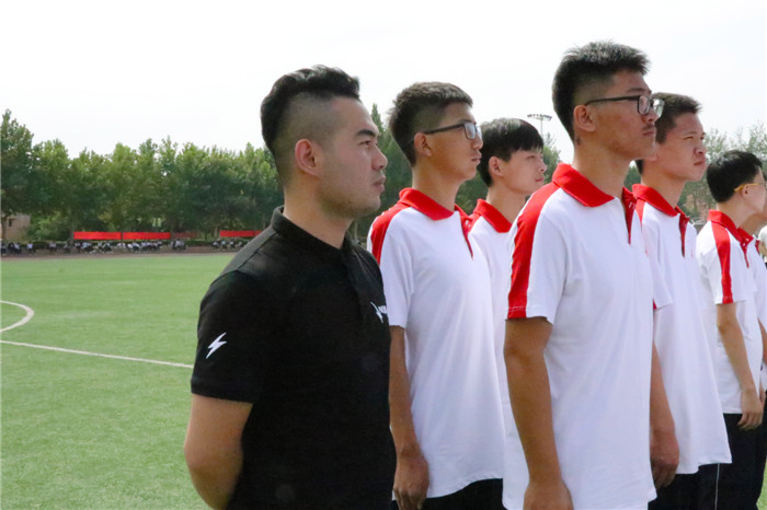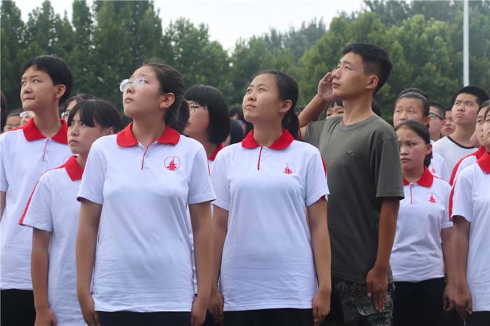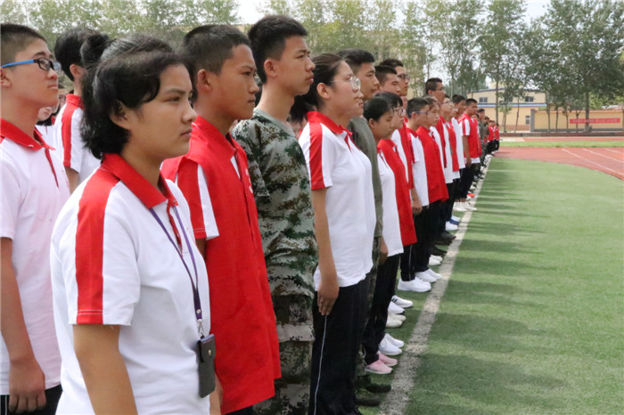 大会在庄严的升旗仪式中拉开了帷幕。伴随着总教官向武装部领导报告准备完毕的雄壮声音,全体起立升国旗奏国歌,同学们面向国旗行注目礼。