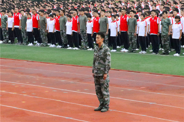 通过组织军训,希望同学们锻炼体魄、增强体质、强化本领、陶冶情操,相信在一周后,每一位同学都能以军人的气质、军人的修养、军人的优良作风和团队精神,向教官、向学校交上一份满意的答卷。