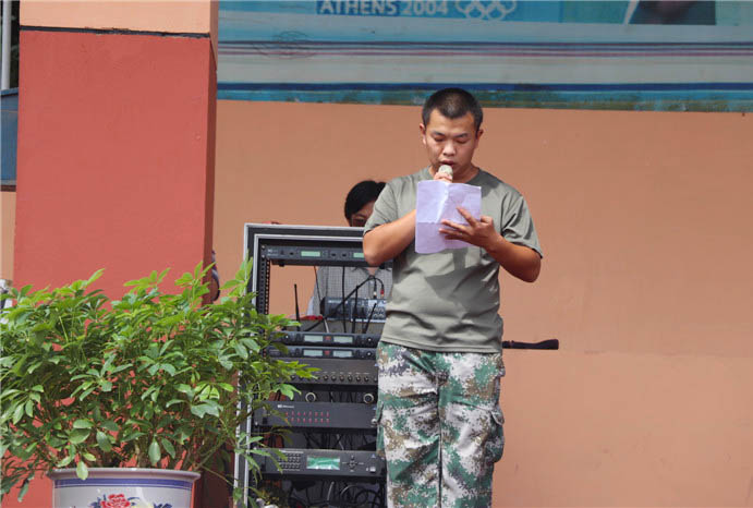副校长刘玉香向全体同学致辞,刘校长言辞恳切地表达了对高一新生的期盼和祝愿,同时,她指出,军训是锻炼身体,磨练意志的第一堂课,有利于身心健康发展,希望同学们能克服困苦,磨练意志。随后,学生代表和教官代表相继发言,表示一定要用实际行动完成好本次军训,不辜负领导、师长的期望。