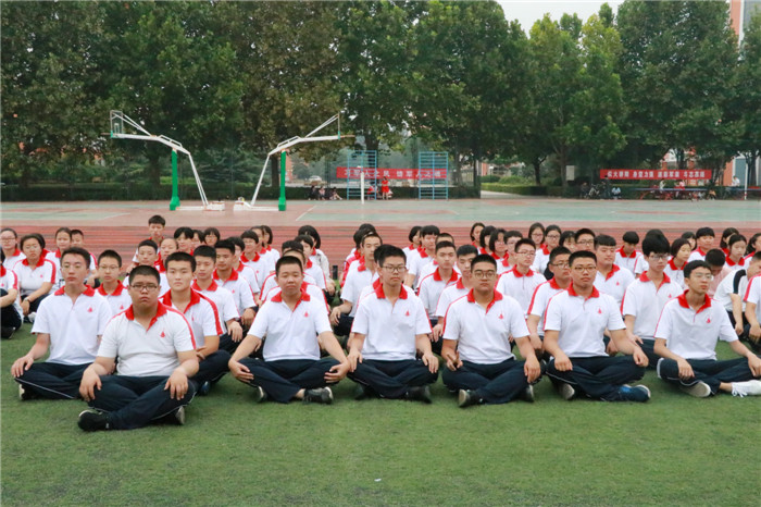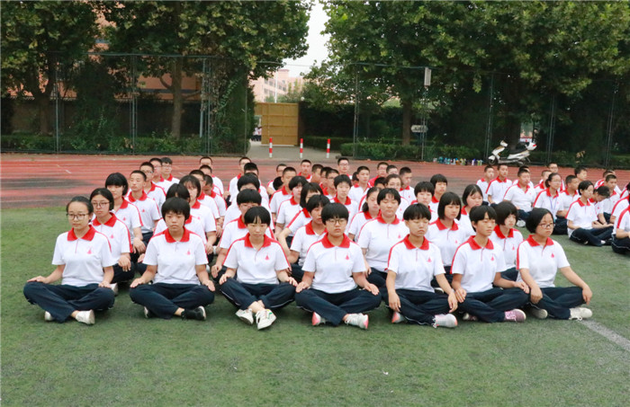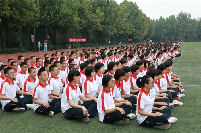 天空下着小雨,但操场上的同学们仍旧“坐如钟,站如松”