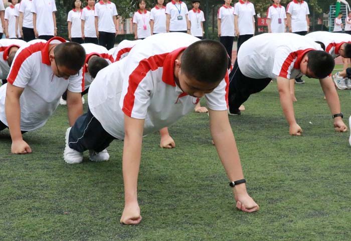 经过两天的军训,“小士兵”们逐渐适应了军训生活。训练场上,我们可以看到小方队们迈着步伐,昂首阔步;听到嘹亮的口号声久久回荡在操场;感受着青春的活力充斥在周围。