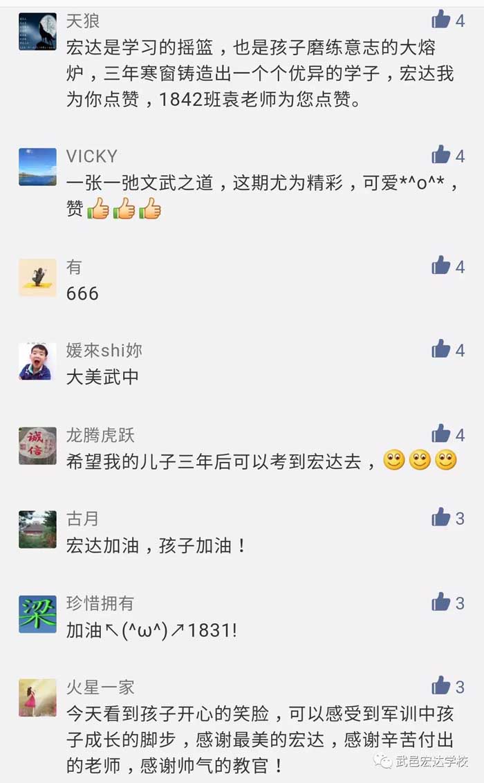 军训,不仅让同学们学到了军事知识,更使同学们褪去了懵懂少年的稚气,收获了激昂青春的正气。每一天的军训画面,让家长和社会看到同学们逐渐适应集体生活,逐步融入宏达学校这个“大家庭”。训练场上同学们每一步的成长,都牵动着家长的心,矫健的步伐,积极向上的育人氛围,引起了强烈的社会反响。