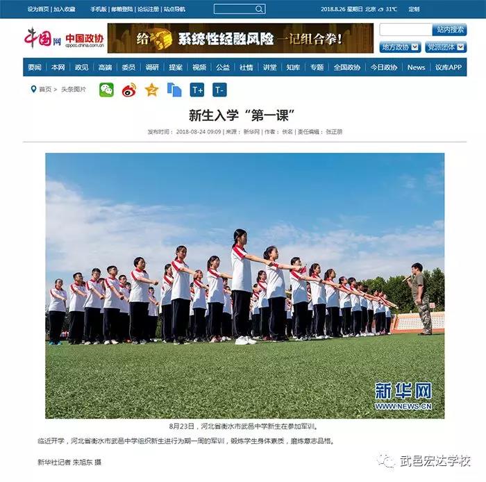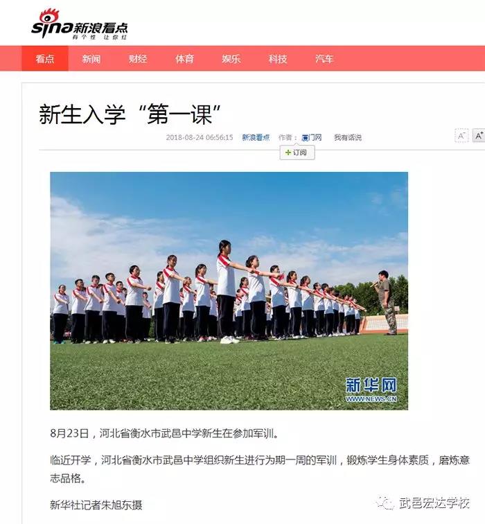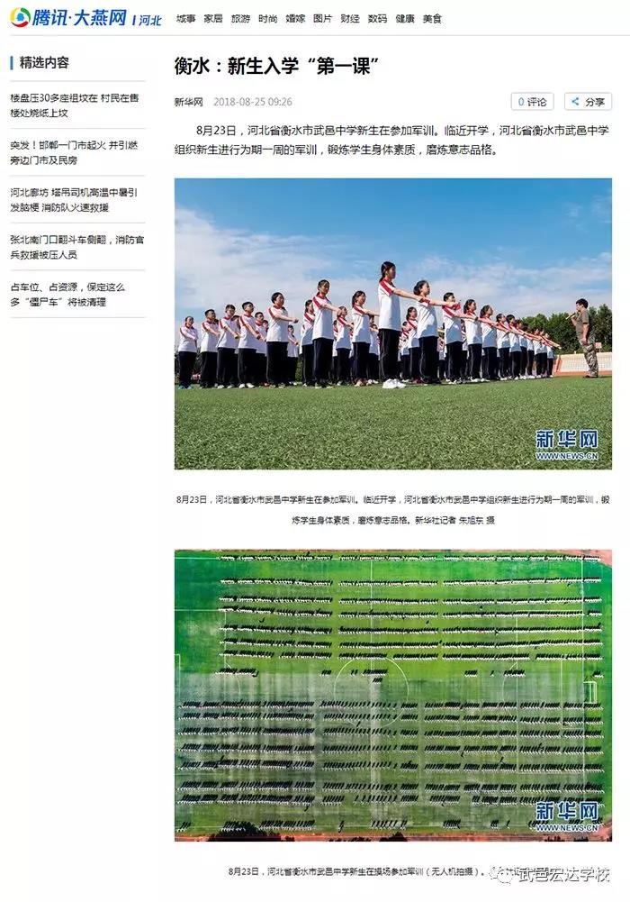亮点频出的军训工作引发了各大媒体的广泛关注,我校教育教学业绩再次被新华社、人民日报、中国政府网、中国政协网、央广网、腾讯网、新浪网等20多家主流媒体报道或转载。2017年11月,新华社记者专程来我校报道科普进校园活动;央视现场报道对我校的奖学扶贫公益活动;《中国教育报》、《河北日报》等整版报道我校办学特色。通过与权威媒体的紧密联系,提升了我校的知名度和认可度,更好地促进了我校的全面发展。