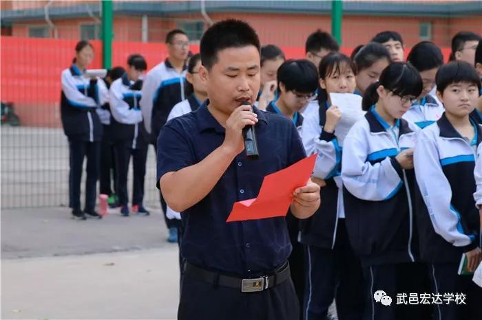 今天的宏达南操场和往常有些不同,少了平时跑操的口号声,取而代之的是一片欢笑声和阵阵掌声。原来是级部主任崔井旺在这里召开“第一次月考总结表彰大会”。