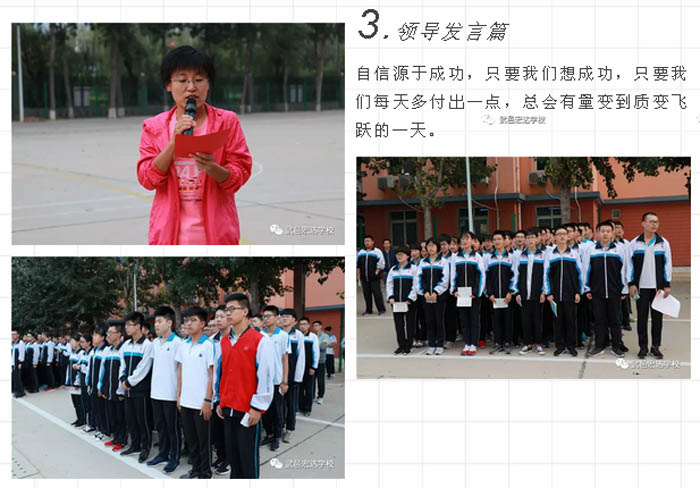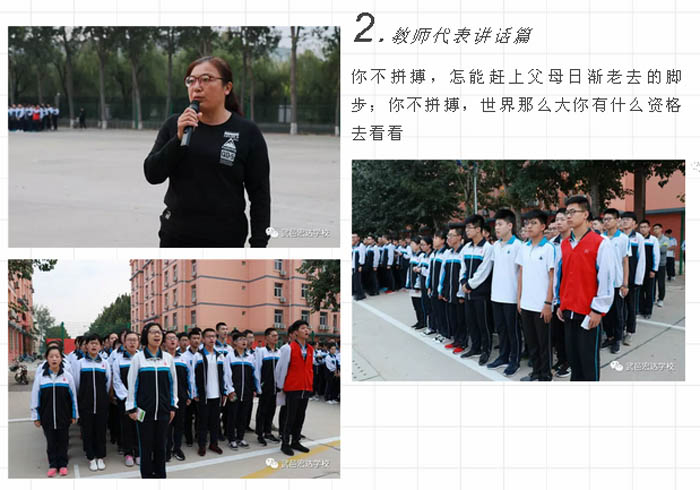 优秀教师代表李艳荣老师对学生们的表现给予了充分肯定,并激励学生:不苦不累 高三无味 不拼不博 高三白活。