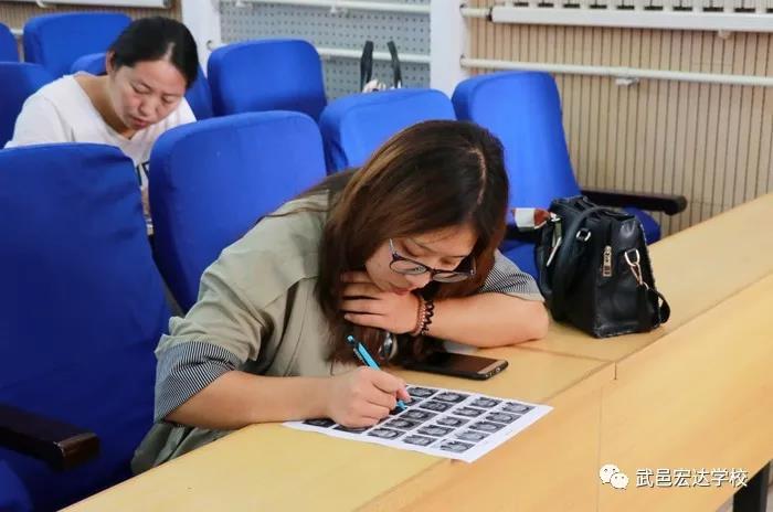 上午8点5分,高一年级没有第一节课的班主任和任课老师都来到报告厅参加此次活动。年级部的干事将准备好的学生照片分发到老师手中,老师们立刻动起笔来在照片下写上对应学生的名字,5分钟不到,大部分老师都已完成,交卷离开。