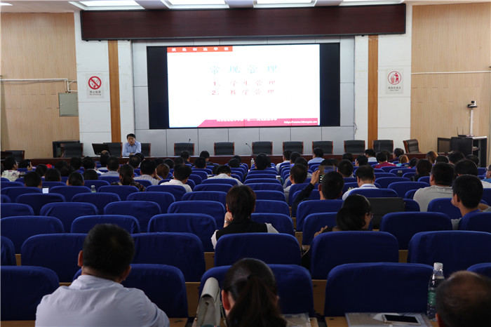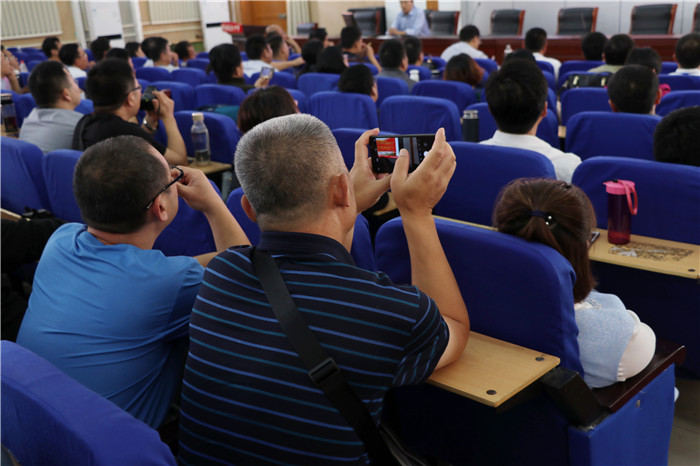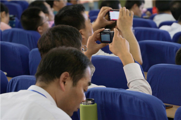 在宏达报告厅,李主任以“抓规范 重管理 提升质量”为题,从我校概况、常规管理以及初三的教学模式三方面向老师们进行了细致讲解。在李主任风趣幽默、案例十足的讲解下,大家听得都很认真,时不时以拍照、做笔记的方式记录我校的教育教学方法。报告结束后,客人们自由参观校园。