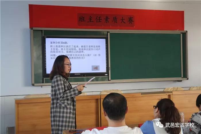 本次大赛分成了两个环节进行。首先,班主任们通过抽签的方式决定演说顺序,每位班主任利用5分钟的时间准备随机抽到的案例题,之后,班主任阐述自己对此案例的看法以及自己的做法。结束紧张的案例分析后,老师们还会来一段才艺秀。最后,由在场的评委进行打分。